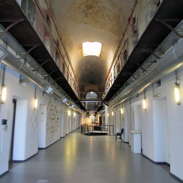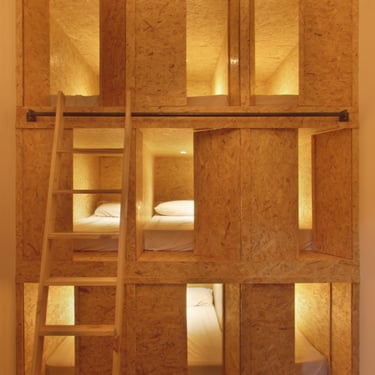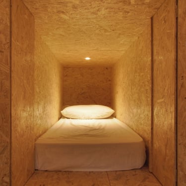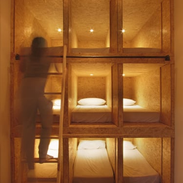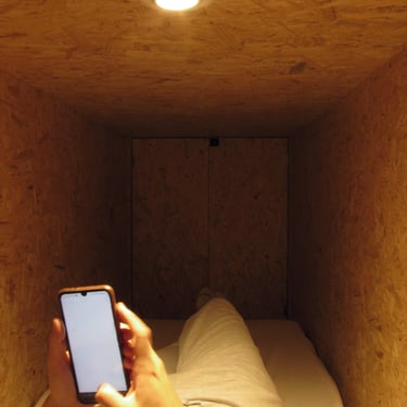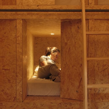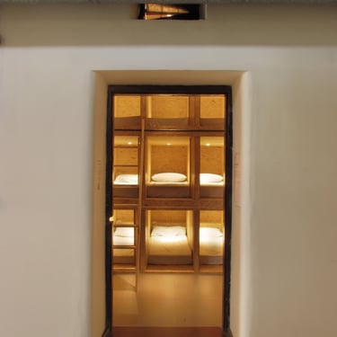 El EAC funciona en las instalaciones del primer edificio carcelario del Uruguay conocido como la Cárcel de Miguelete. En una de las celdas individuales propuse la construcción de 9 habitaciones cápsulas, optimizando así el volumen habitable. A su vez estas habitaciones se ofrecieron en Airbnb (página de alquileres temporarios) para que cualquier persona pueda alojarse.